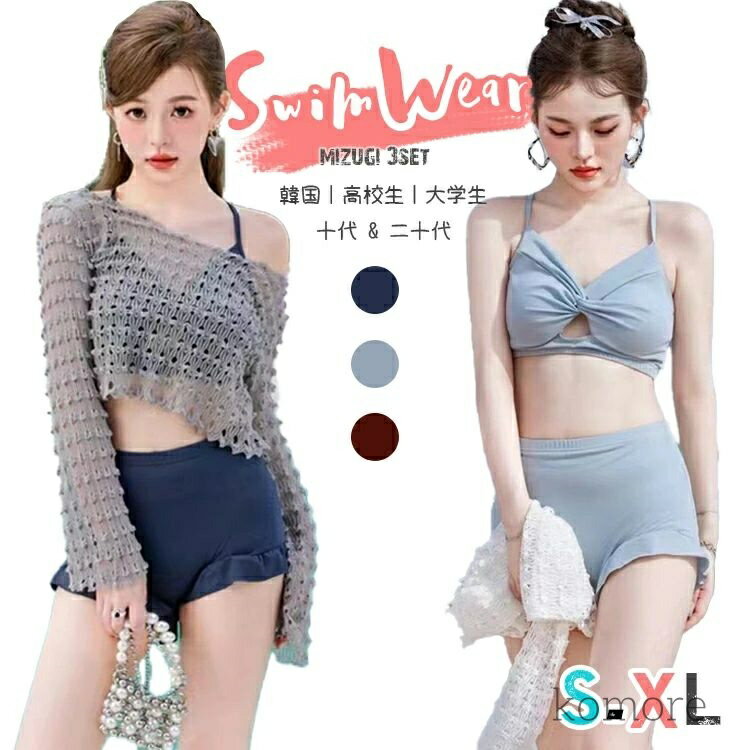 【M/L/XL/2XL/3XL】水着 韓国 大人 女性用 ビキニ 体型カバー ビキニ 韓国風 痩せる レディース 3点セット 黒 白