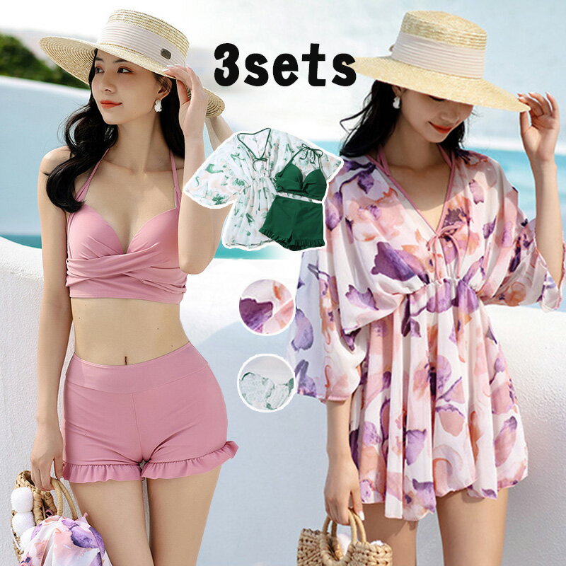 レディース 水着 2点セット 花柄 リゾート 水着 ショートパンツ 体型カバー水着 大人気 盛れる 女の子