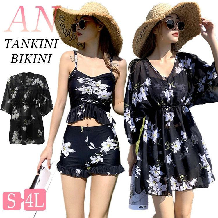 2024新型水着 レディース 3点セット リゾート水着 温泉水着 フィットネス水着 痩せ見え 露出控・・・