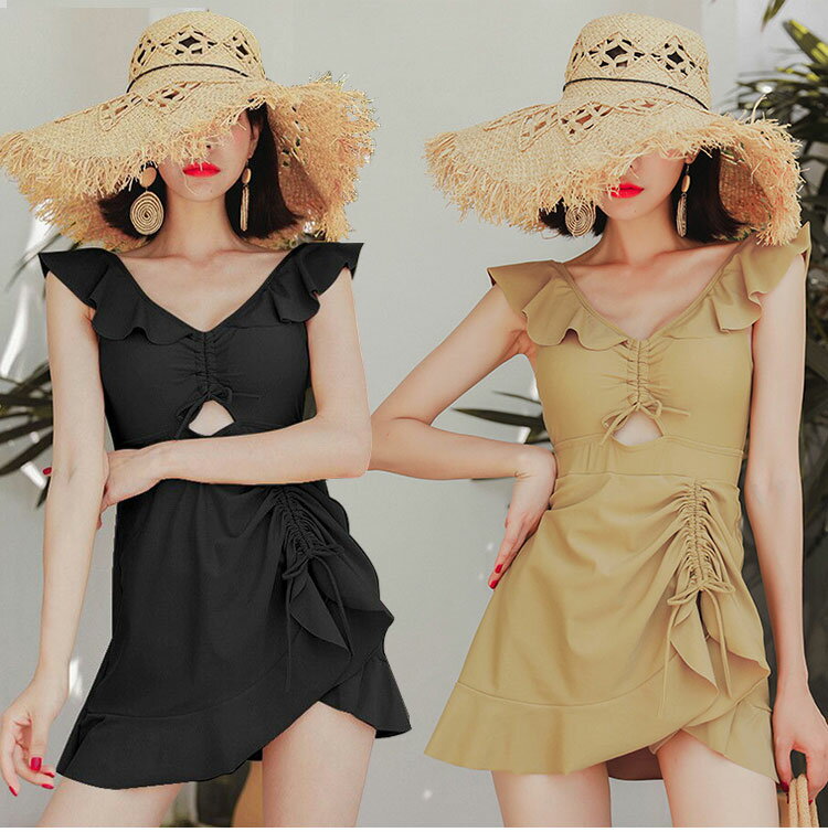 水着 レディース シンプル フリル ワンピース 可愛い 体型カバー