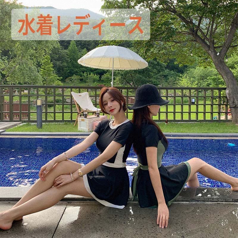 水着 レディース 体型カバー 韓国 お洒落 水陸両用 レディース 海水浴 お洒落 オトナ女子 体型カバー セパレート 太もも