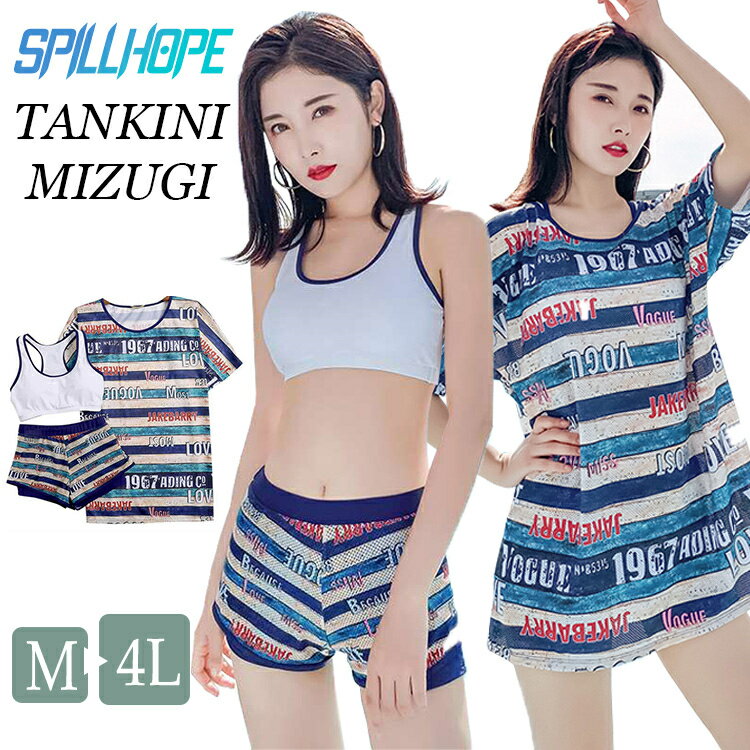 水着 レディース ビキニ 体型カバー タンキニ 3点セット 大きいサイズ オトナ女子 ママ ミセス ・・・