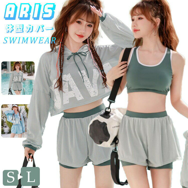 水着 レディース 体型カバー 韓国 お洒落 水陸両用 レディース 海水浴 お洒落 オトナ女子 体型カバー セパレート 太もも