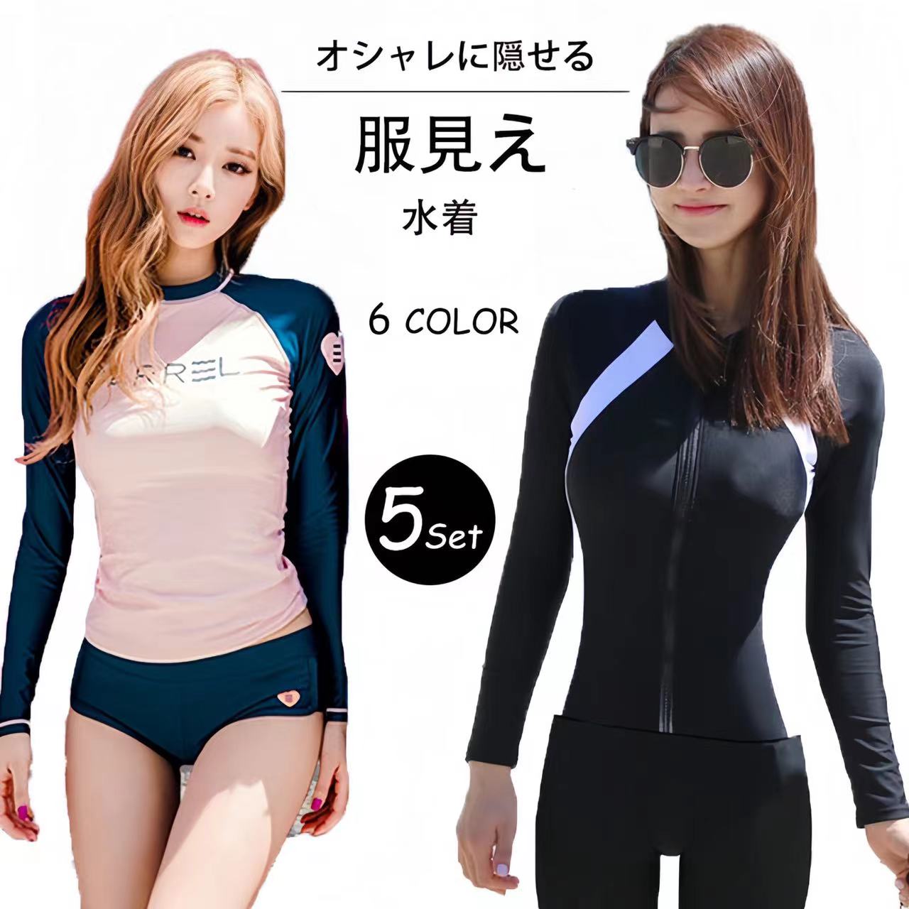 体型カバー 水着 レディース 長袖 5点上下セット フィットネス水着 セパレート かわいい パンツ ・・・