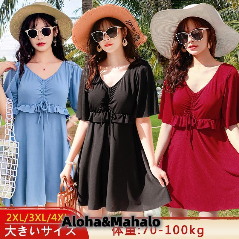 ス お母さん 温泉 中高年 保守 ママ 大きいサイズ 体型カバー タンキニ vネック ワンピース シ・・・