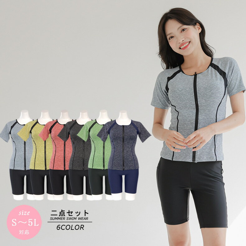 水着 レディース 体型カバー スプリット 半袖 セパレート 学生 大人 女子 セット ママ水着 女性・・・