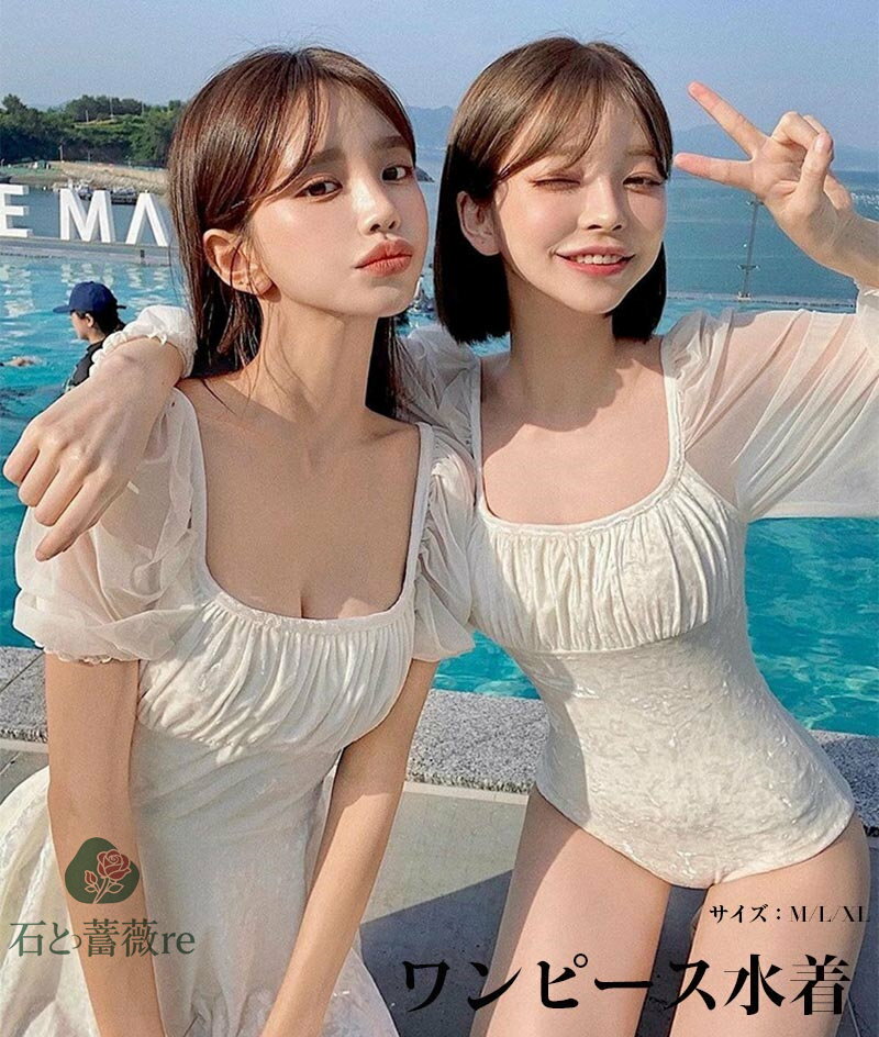 ワンピース水着 レディース レース 体型カバー水着 オールインワン みずぎ ミズギ フリル ホワイト ブラック ぽっちゃり 20代 30代 40代 50代 60代 ワンピース水着 肩出し かわいい
