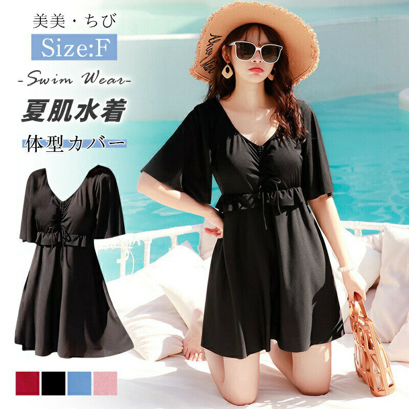 即納レディース水着体型カバー大きいサイズぽっちゃり二の腕太ももサーフパンツリゾートシンプル大人フィットネス水着小胸ティーン日焼け防止盛れる胸元カバー