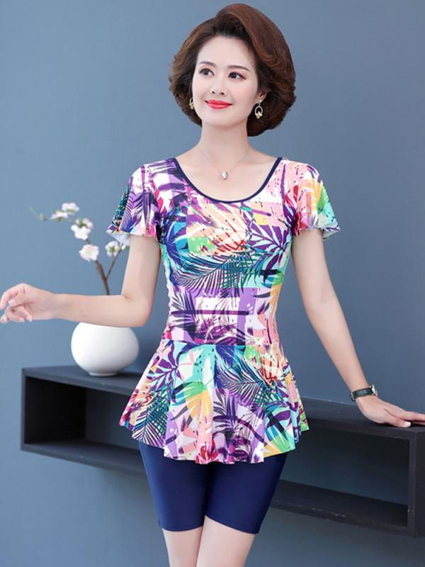 レディース 水着 婦人 ママ水着 半袖 セパレート 露出控えめ 体型カバー パンツ付き 2点セット ・・・