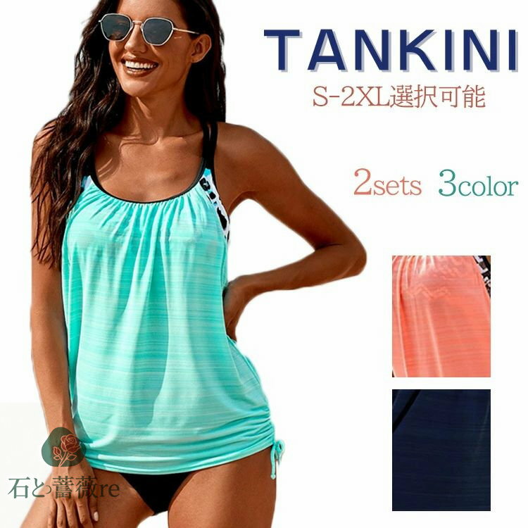 水着 レディース タンキニ ママ 2点セット 水着 体型カバー タン