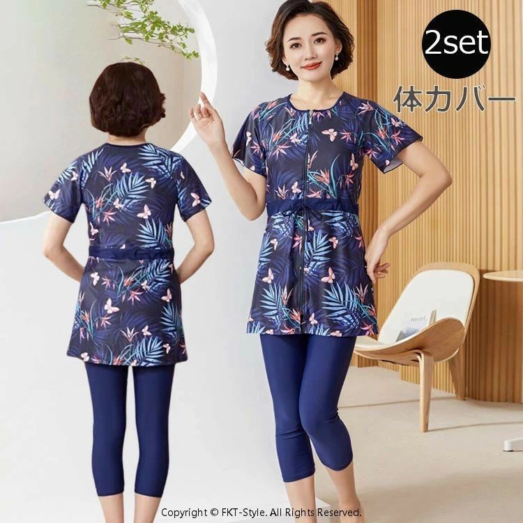 フィットネス水着 セパレート水着 レディース セットアップ ワンピース レギンス 中高年 お母さん ・・・