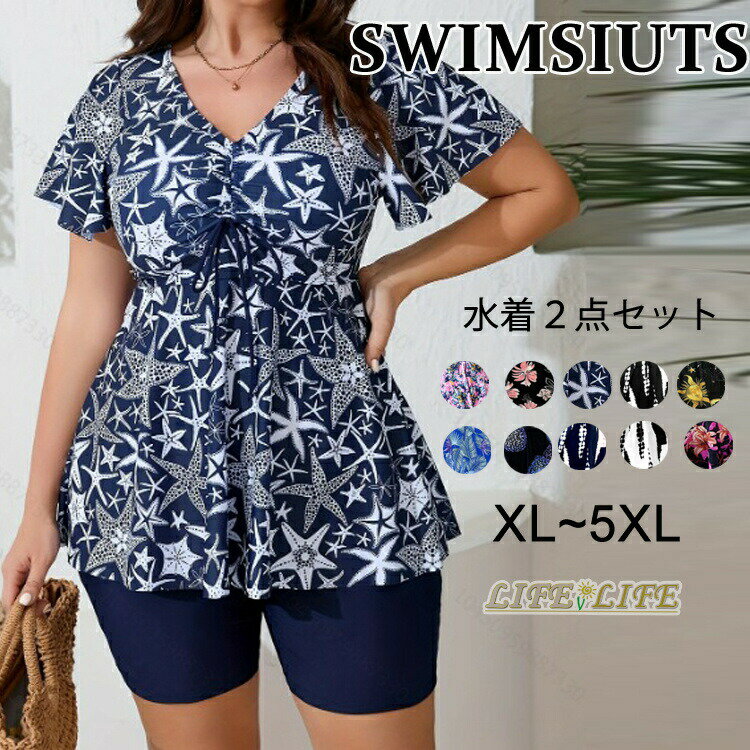 水着 レディース 40代50代60代 大きいサイズ ぽっちゃり水着 体型カバー セパレート水着 2点セット ママ水着 中高年 お母さん ビーチウェア パッド付き