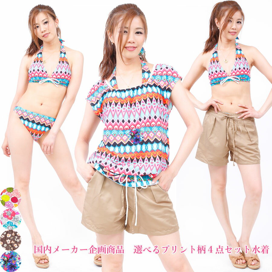 水着レディース体型カバータンキニセパレートショートパンツサーフパンツ女性用ビキニセット4点大きいサイズママミセス30代40代女の子フィットネス国内ブランド