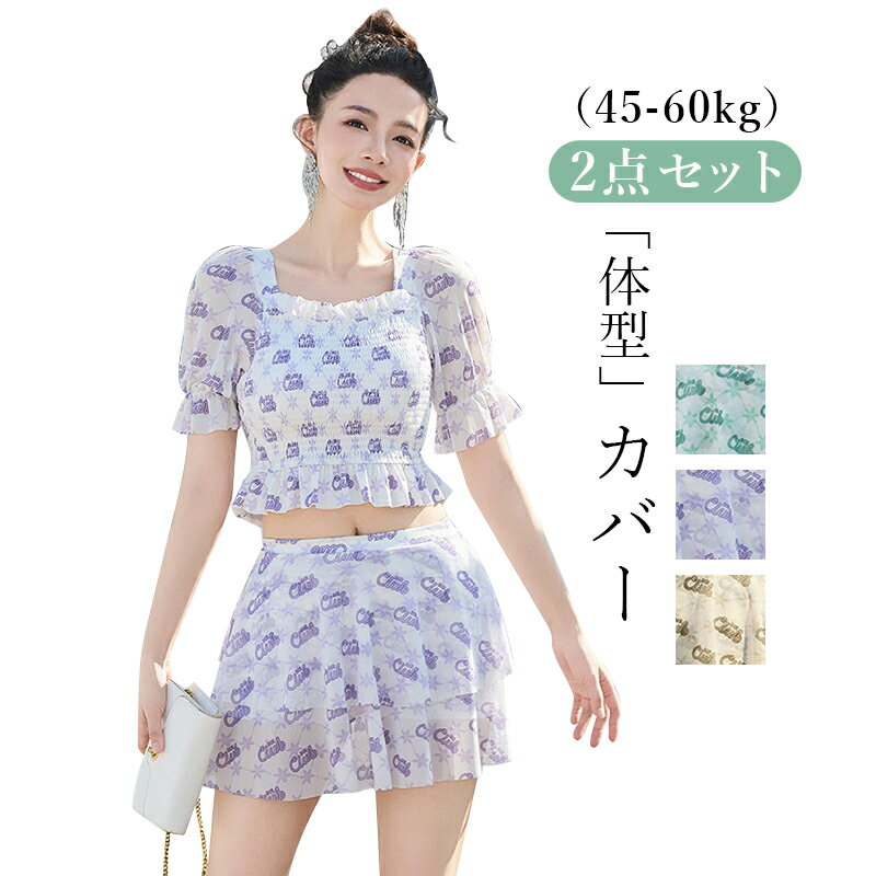 水着 レディース 体型カバー 可愛い水着 2点セット 夏