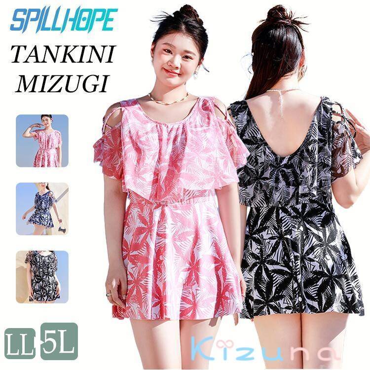 フィットネス 体型カバー タンキニ ラッシュガード 大きいサイズ 体型カバー水着 おしゃれ ママ 2点 セット ワンピース オフショル ぽっちゃり 30代 40代 50代 60代