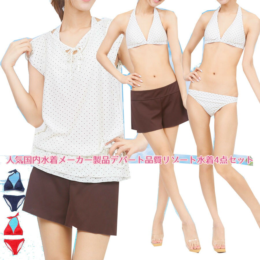 水着体型カバータンキニビキニサーフパンツレディースセパレート4点セットカバーアップタンキニ水着体型カバー水着ホルターネック日焼け防止ママ盛れる送料無料