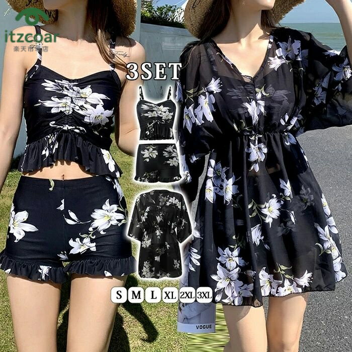 水着 ビキニ レディース レディース水着 オールインワン 水着 ビキニ セット 花柄 長袖 フレア ・・・