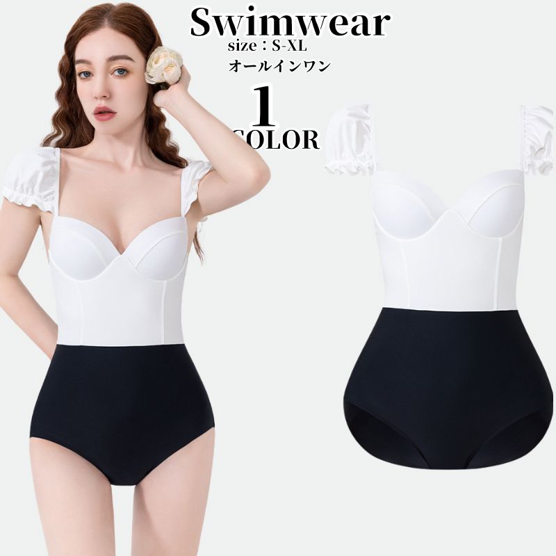 水着 オールインワン 水着 ビキニ ブラック フレア 半袖 可愛い 20代 30代 40代 50代 ・・・