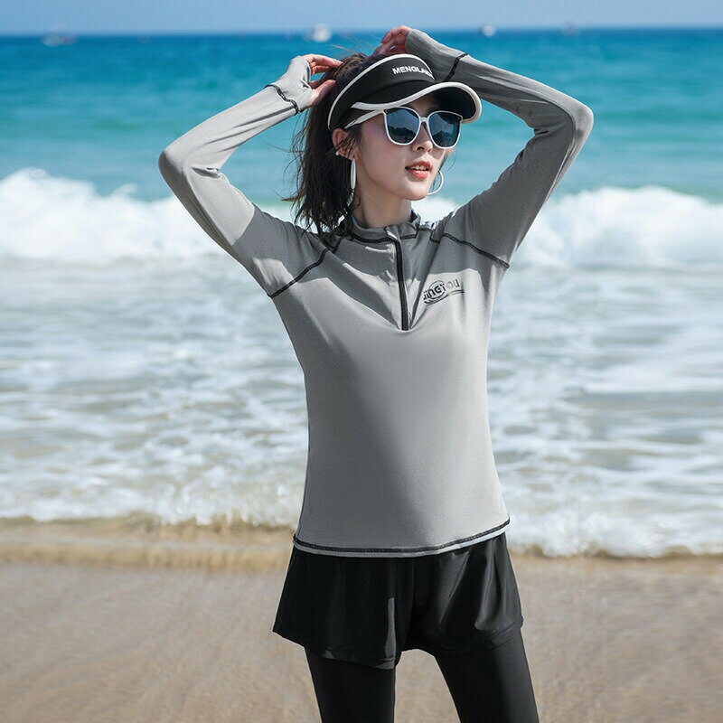 ロングスリーブ 女性 セパレート水着 マリンスポーツ スプリット水着 60代 50代 40代 30代 20代 10代 新商品 袖付き 二の腕 お尻 太もも お腹 カバー クロップドトップス