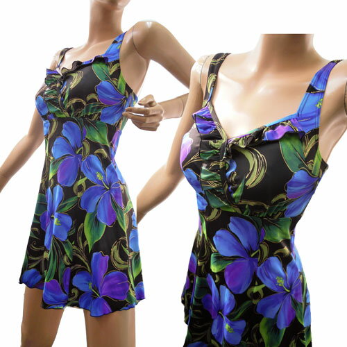 スタイルがよく見える素敵な水着♪ バストラインが綺麗に見えるデザインです♪ ハイビスカス スポーツドレス