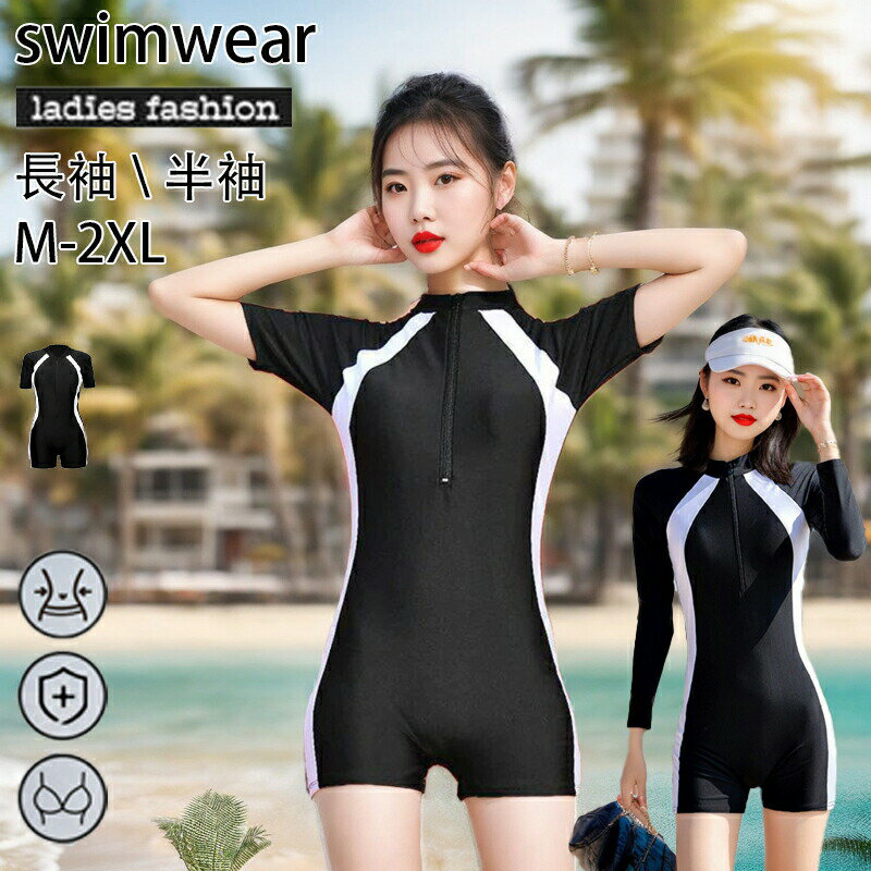 即納レディース水着体型カバー大きいサイズぽっちゃり二の腕太ももサーフパンツリゾートシンプル大人フィットネス水着小胸ティーン日焼け防止盛れる胸元カバー