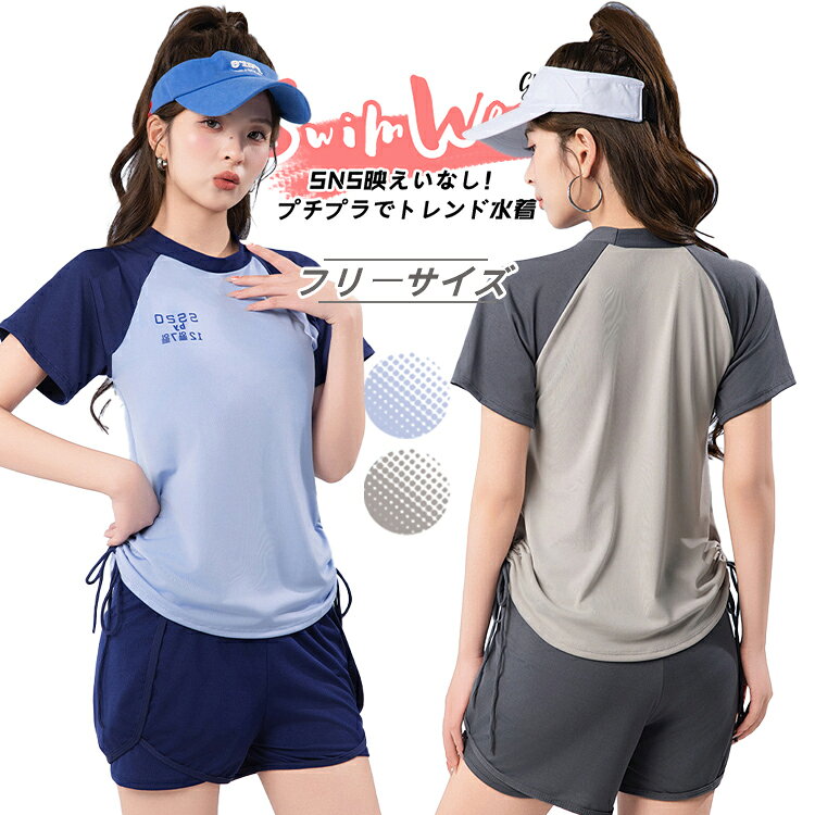 水着 レディース 体型カバー セパレート 半袖 大きいサイズ 学生 大人 女子 セット かわいい お・・・