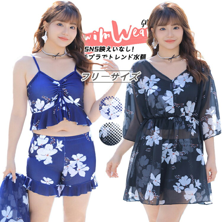 水着 レディースセクシー泳ぎ ワンピース水着2点セットアップ 体型カバーかわいい水着 花柄オールイン・・・
