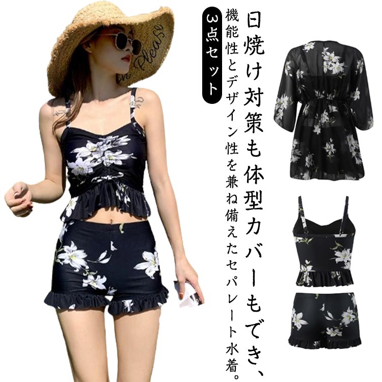 3点セット 水着 レディース 体型カバー ビキニ セパレート フィットネス タンキニ 大きいサイズ セットアップ セクシー おしゃれ ビキニ水着