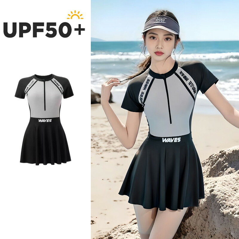 3色展開のおしゃれな水着 xo 水泳 セパレート シンプル ファスナー 体系カバー送料無料 大きいサイズフィットネス