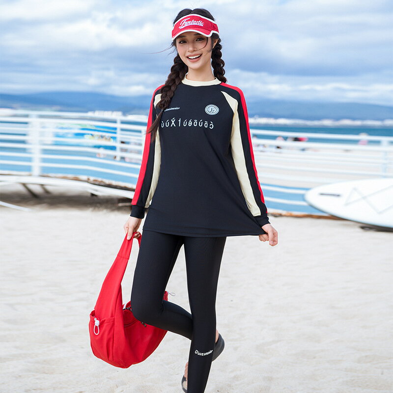 女性 ウェット スーツ 長袖長ズボン ビーチ スパ セパレート水着 マリンスポーツ スプリット水着 60代 50代 40代 30代 20代 10代 新商品 袖付き