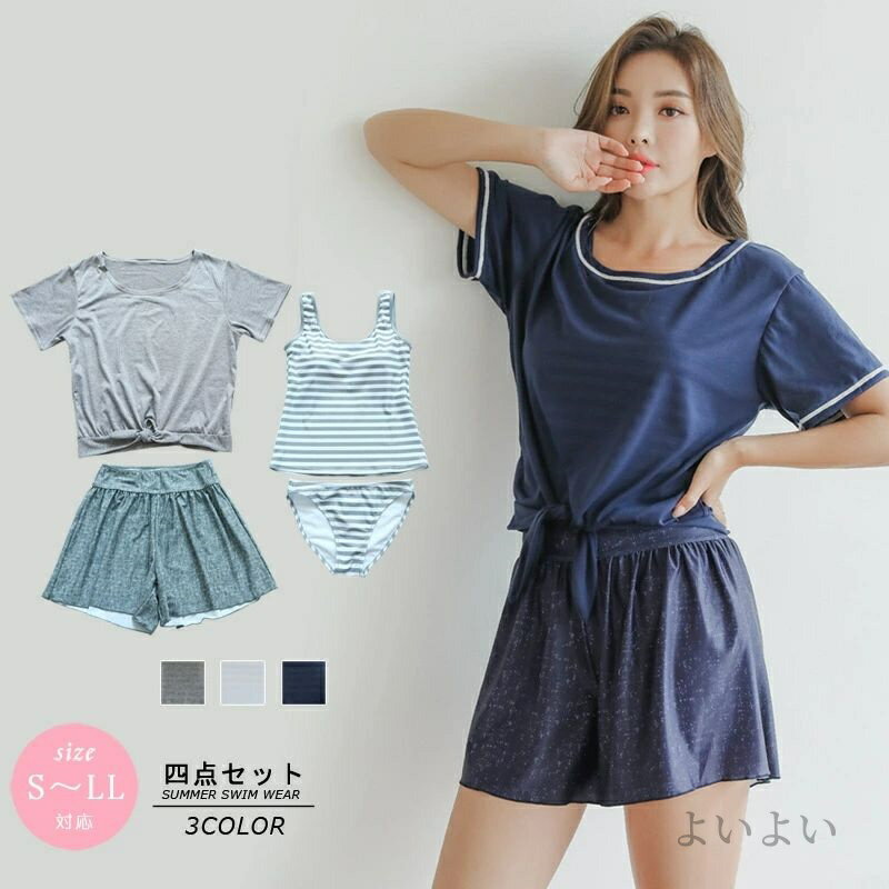 水着 レディース 体型カバー タンキニ セパレート ショートパンツ サーフパンツ 女性用 ビキニ セット 4点 大きいサイズ ママ ミセス 30代 40代 女の子