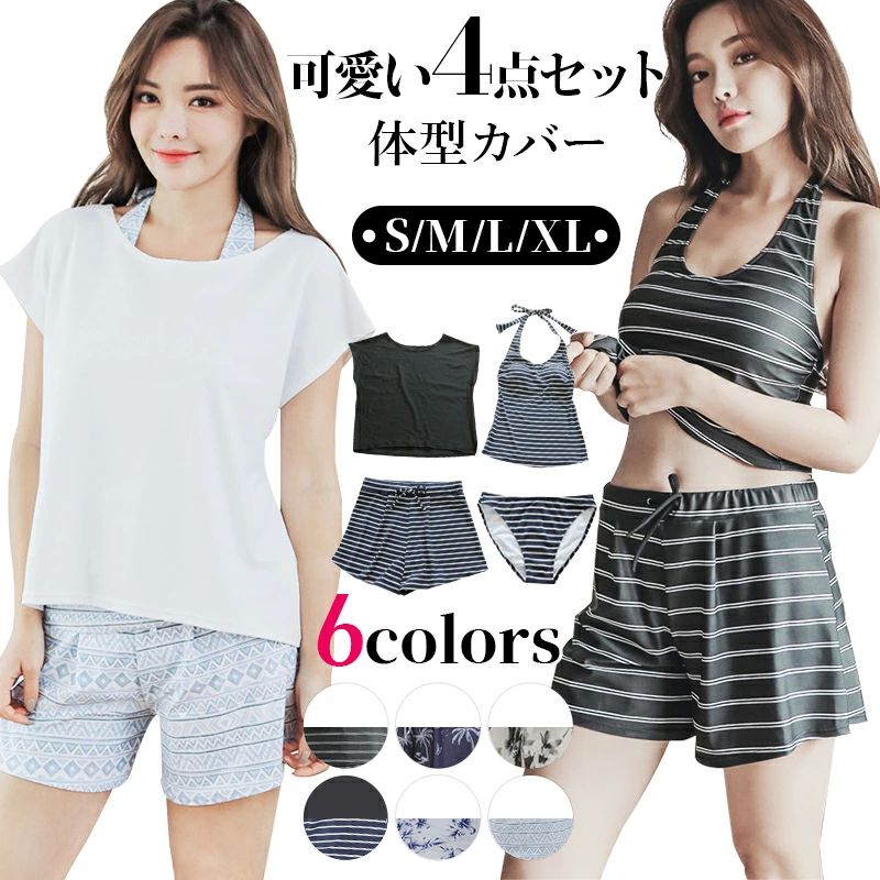 水着 レディース 体型カバー 可愛い水着 4点セット 夏