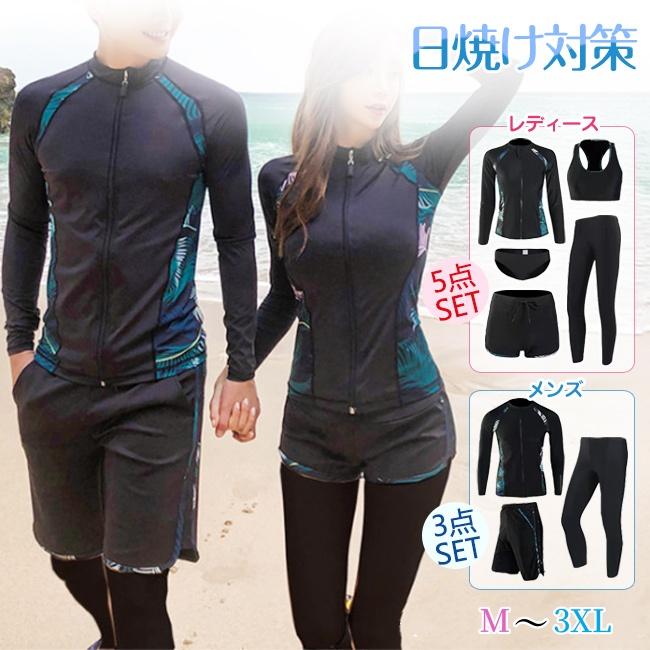 水着 レディース メンズ 5点/3点セット 日焼け対策 水陸両用 タンキニ ラッシュガード タンキニ・・・