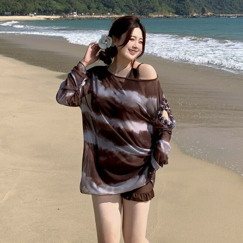 ママ 女性 可愛い お洒落 ブラウン/ブルー 新商品 セット水着 10代 20代 30代 40代 50代 60代 ビキニ3点セット