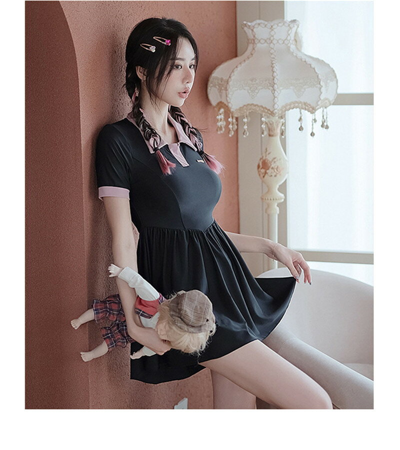 シックな洋服のようにキマる!着こなしやすいシンプルワンピ☆ 体型カバー水着 モノトーンワンピース ママ水着 セクシー プール 夏 女性 海 リゾート 3L ブラック