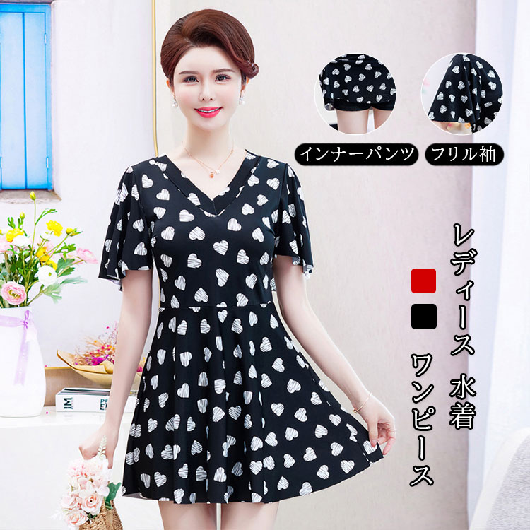 ワンピース 水着 レディース 体型カバー 水着 レディース オールインワン 体型カバー水着 ママ水着 みずぎ ミズギ フリル 大きいサイズ スカート