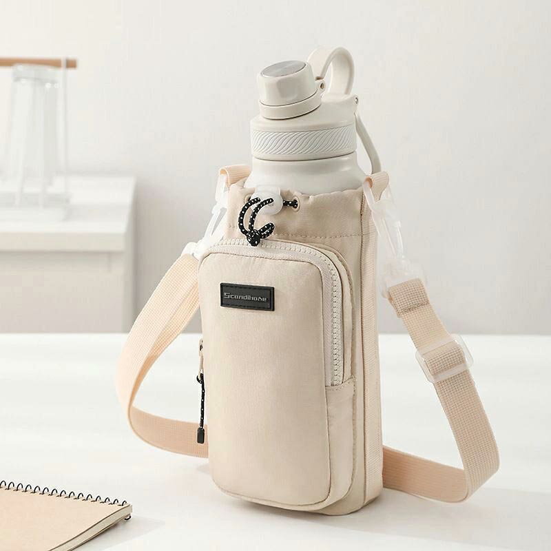 ペットボトルホルダー ファスナポーチ タンブラー ストラップ 水筒入れ 斜め掛け 500ml~1000ml 持ち歩き 散歩 水分補給 収納 携帯用 男女兼用 アウトドア 旅行 登山 キャンプ 運動会