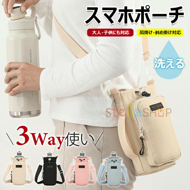 ボトルホルダー 水筒カバー スマホポーチ ナイロン 防撥水 3way 斜めがけ 肩掛け 手持ち 水筒・・・