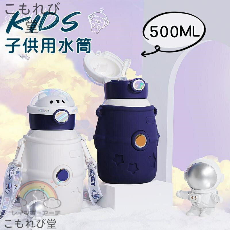 水筒 子供用 ストロー 500ML 紐付き ストロー式 ステンレス キッ