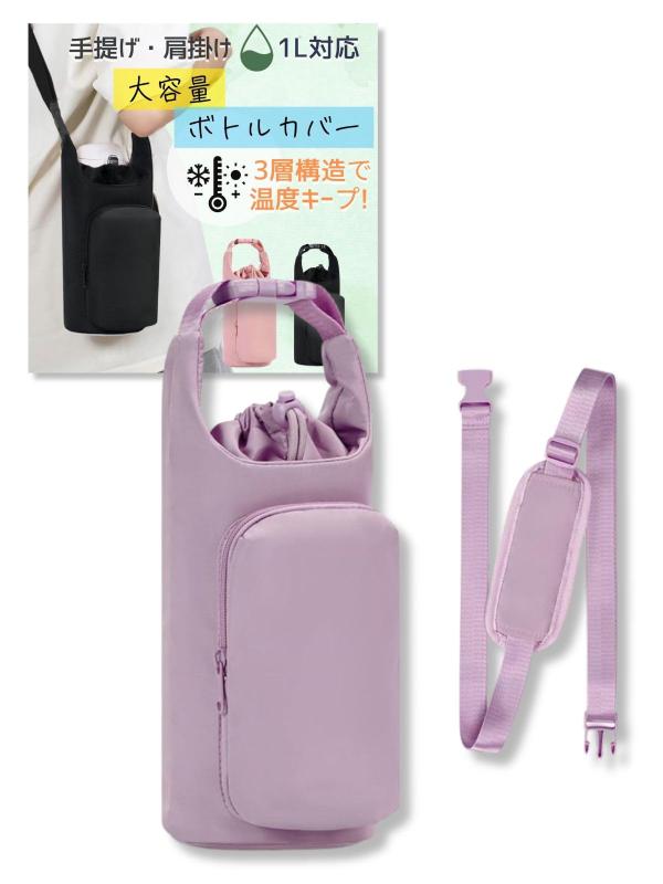 水筒ケ 水筒カバー 大人 ショルダー 保温 保冷 水筒ケース 1リットル ブラック ペットボトルカバ・・・