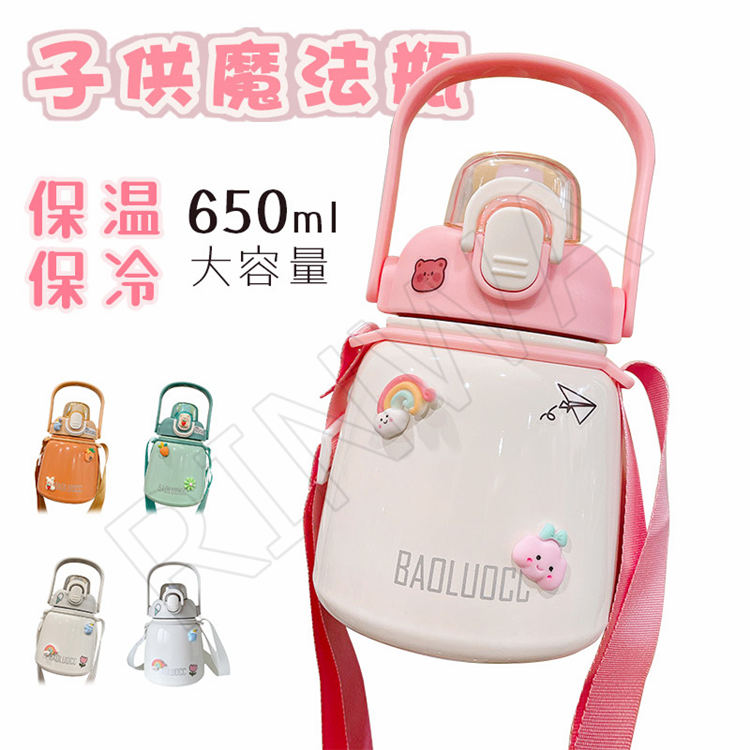 水筒 キッズ 650ml ステンレス ストロー 保温 保冷 ボトル 肩掛け コップ ワンタッチ すいとう 子供 こども 子供用 魔法瓶 女の子 男の子 魔法瓶 送料無料