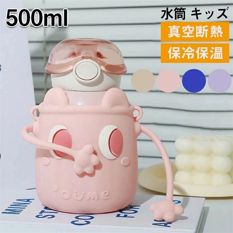水筒 子供 500ml 3way 316ステンレスライナー かわいい外観 耐久性 防滴蓋 ストロー ・・・