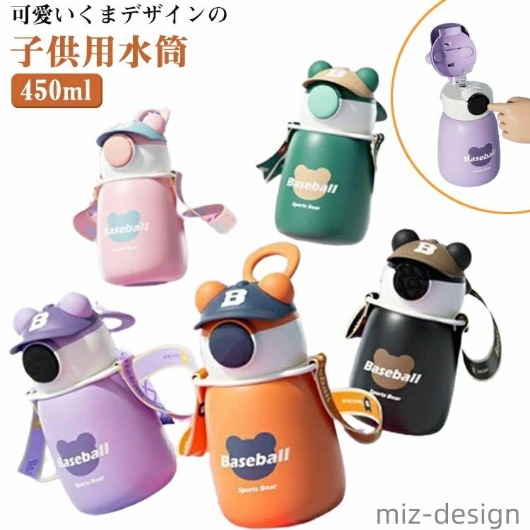 水筒 キッズ 430ml 小学生 子供 直飲み カバー付き 肩紐 保冷 送料無料 ステンレス ボトル・・・