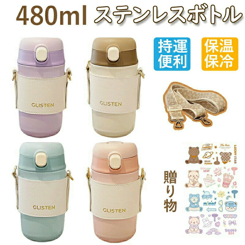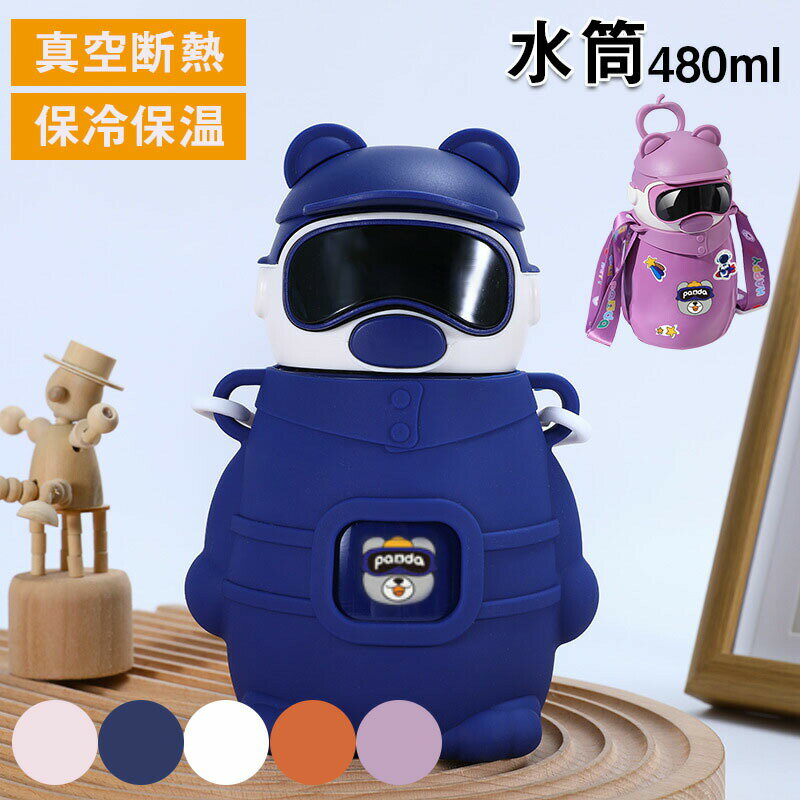 水筒 キッズ 480ml 小学生 子供 直飲み カバー付き 肩紐 保冷 送料無料 ステンレス ボトル・・・