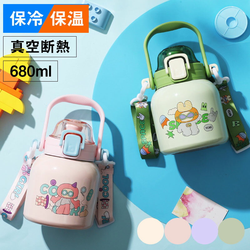 水筒 キッズ 680ml 小学生 子供 直飲み カバー付き 肩紐 保冷 送料無料 ステンレス ボトル・・・
