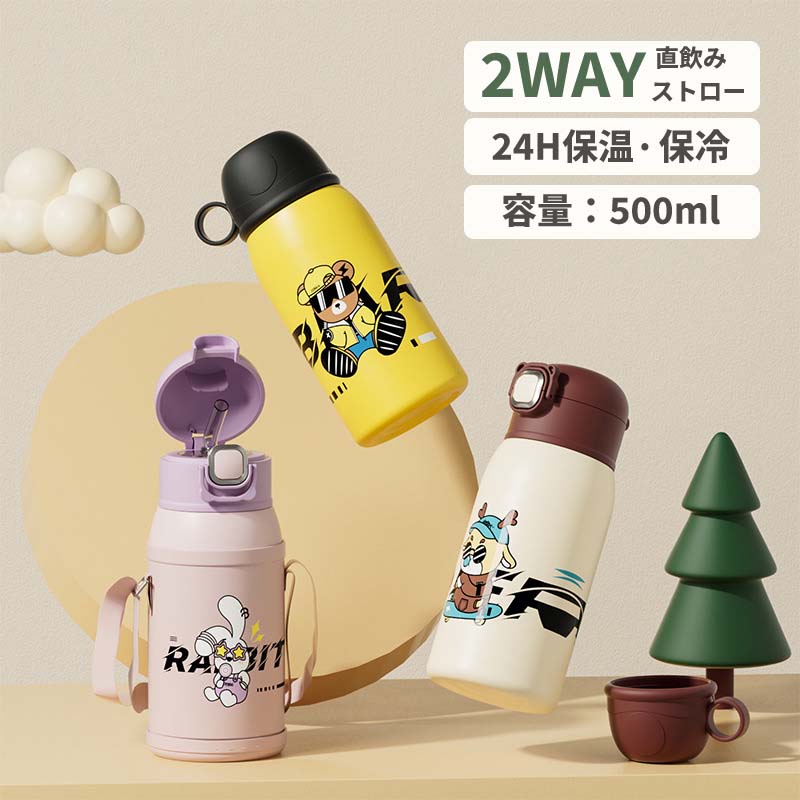 水筒 魔法瓶 ステンレス 真空断熱 ストロー飲み キッズ 女の子 男の子 500ml 子供 ステンレ・・・