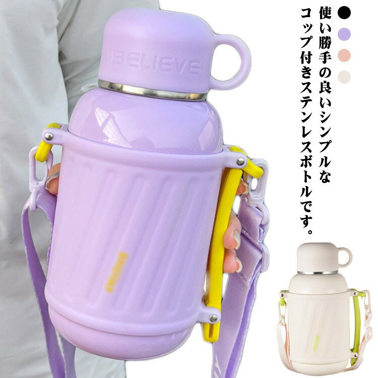 コップ付き 水筒 保温 保冷 ステンレス 肩ひも付 肩掛け かわいい 幼稚園 小学生 ステンレスボトル
