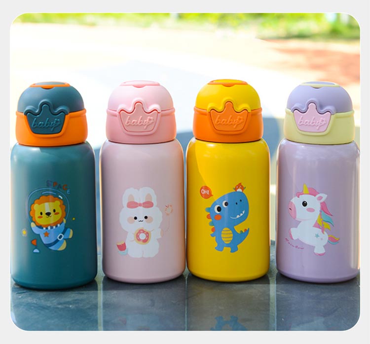 かわいい アニマルボトル ストロー付き水筒 ステンレス
