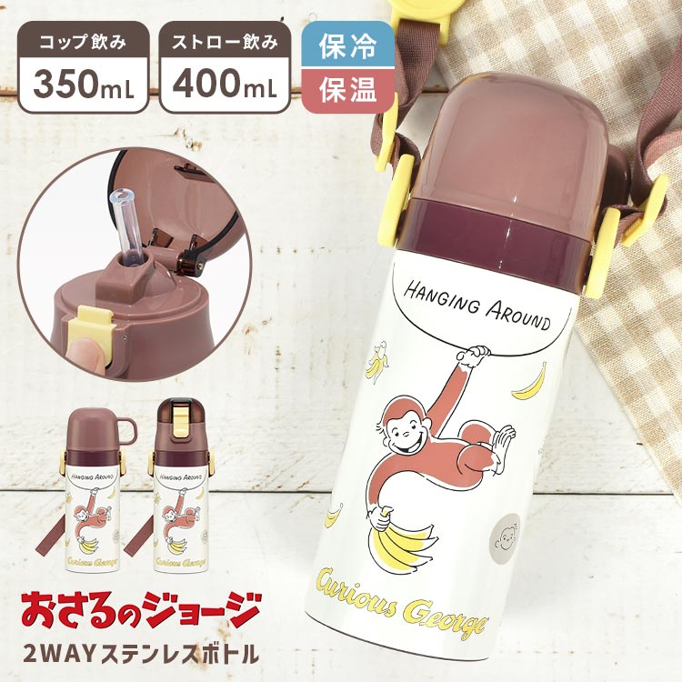 水筒 マグ ボトル おさるのジョージ 小学生 キッズ 子供 2way コップ ストロー ワンタッチ ・・・