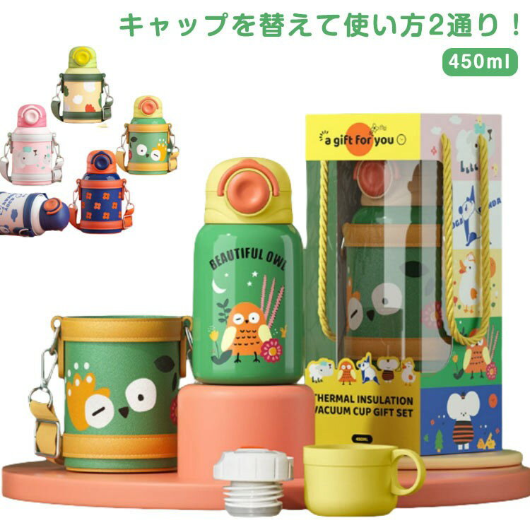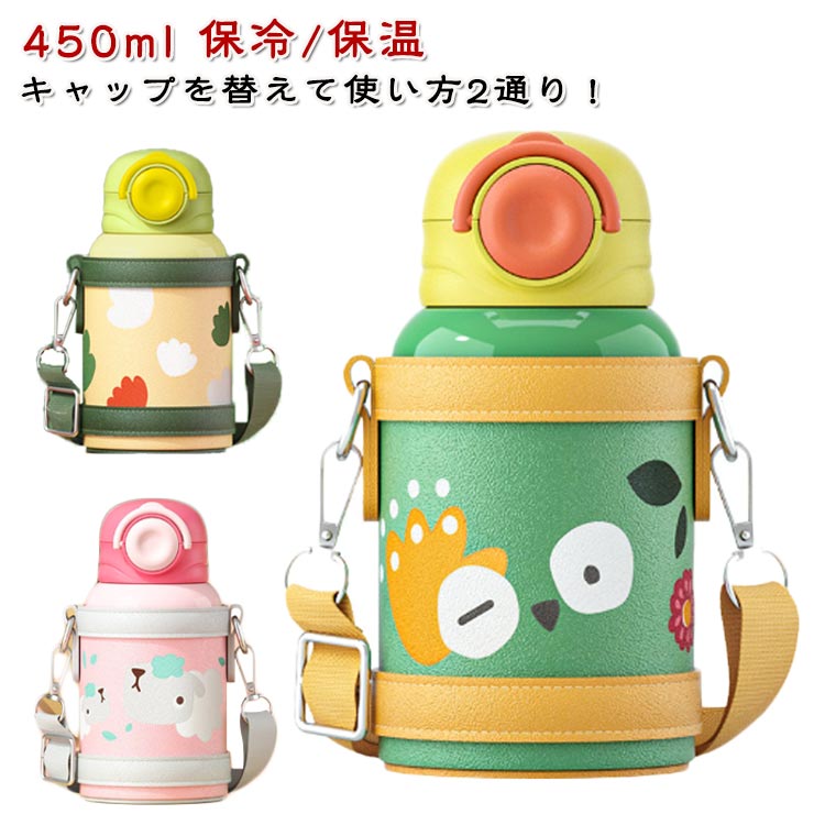 蓋で変身、お出かけ相棒! 機内持ち込み 大人用 水筒 キッズ ショルダー ステンレス おしゃれ スポーツ 魔法瓶 ポット キッズボトル 小学生 カバー 滑り止め 旅行通学 軽量 誕生日 ギフト